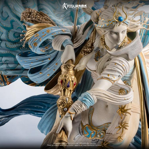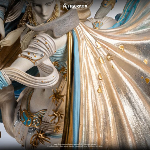 Every detail in this statue is a tribute to Amano's iconic style. A key highlight is the semi-translucent cape, meticulously sculpted to create a dynamic, flowing effect that perfectly emulates the painter's brushstrokes and captures a sense of movement. The armor is intricately engraved, with designs that pay homage to the artist's unique visual lexicon.