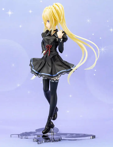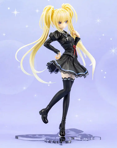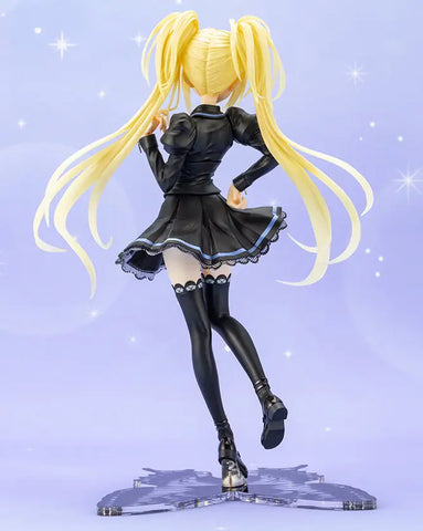 To celebrate the 20th anniversary of the series, Kotobukiya brings us a figure of Hoshina Utau from "Shugo Chara!" This junior-high-school idol may seem mature and cool, but she actually loves her older brother Ikuto. She's been faithfully recreated from her appearance in the series, with her distinctive twin tails, sulky expression, and uniform details all meticulously sculpted. Her hair is delicately painted to create a sheer, airy impression. The realistic wrinkling of her jacket and skirt combine with the detailed sculpting of her cross-shaped accessories, allowing you to enjoy the cute gothic atmosphere her uniform creates! A butterfly-shaped base is included; some partial assembly is required.