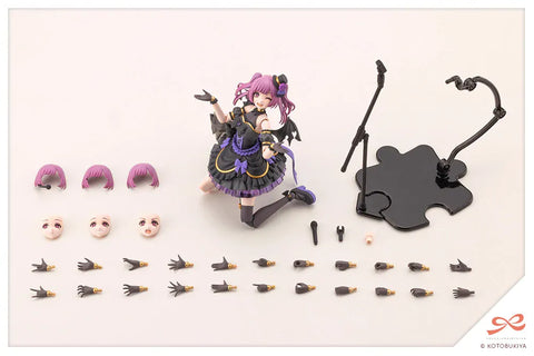 Yue Kisaragi, a third-year student at St. Iris Gakuen Girls' High School, the same school attended by Ritsuka Saeki and Emma Koishikawa, is released as a plastic model kit of her on-stage persona Tsuki! The new design is partially rearranged by illustrator En Morikura to improve articulation. The model has been specifically engineered to be able to recreate cute dance choreography. It features extendable shoulder joints, a neck joint capable of moving in all directions, and double-jointed knees for improved flexibility.Two articulation points in the torso allow for bending forward or arching backward, enabling a wide range of expressive poses.