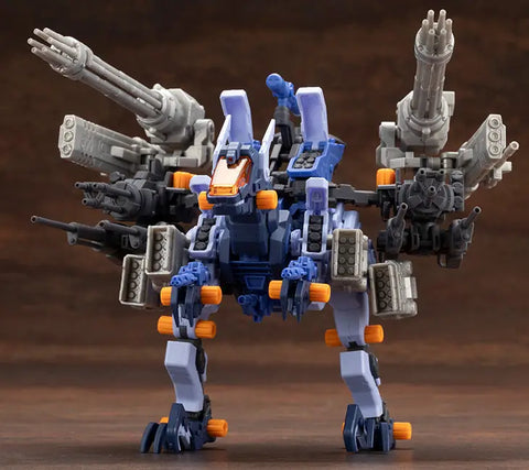 The Gun Sniper Leena Special, Team Blitz's heavily armed Zoid from "Zoids Future Century/ZERO," returns to Kotobukiya's "HMM (Highend Master Model)" model-kit lineup -- and this time it's molded in colors more faithful to its appearance in the series! In addition to the Wild Weasel unit, it's equipped with a six-barreled beam gatling gun and AZ triple linear cannon on its back, missiles mounted in various places, and more, making it truly a mobile arsenal. It also comes with a weapon basket that allows you to recreate scenes from the series.