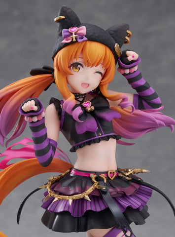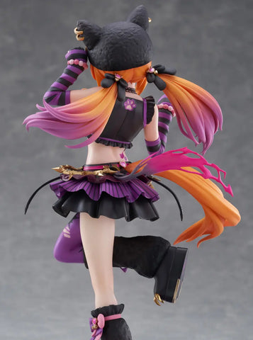 Mayano Top Gun from the game "Uma Musume: Pretty Derby" gets a new figure from Claynel in her Halloween costume, "Rockin' MewMeow"! This figure is based on her victory pose, which shows off all the intricate details of the fun outfit, including the fluffy texture of her hat and leg warmers, the golden waist chain and hat earrings, and the voluminous frilly skirt, with different designs on each layer to make it extra eye-catching! Cute cat-themed icons are scattered throughout the outfit as well -- even on the soles of her boots! She's wearing her hair in a different style than usual, and the gradient color on the ends of her twin tails gives this figure an extra pop of bright color that looks great with the rest of her costume. Her base is included.