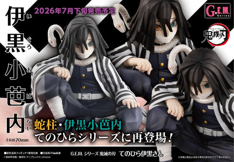 Obanai Iguro from "Demon Slayer: Kimetsu no Yaiba" returns to MegaHouse's "G.E.M. Tenohira" figure series! His compact physique is perfectly recreated, as is the snake on his shoulder and the patterns on his clothing. A base is included too.