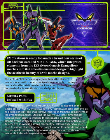 Inspired by the legendary EVA Mark.06 from the Rebuild of Evangelion saga, the exterior is armored in EVA-grade molding — sharp, angular, unapologetically extra. Whether you're grinding through school or crushing noobs in an eSports tournament, this bag has your back — literally — with EVA back padding, ergonomic compartments, and a spring system that turns your spine-saving dreams into a wearable reality.