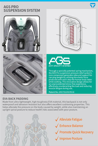- AGS Pro Suspension System for ergonomic weight distribution