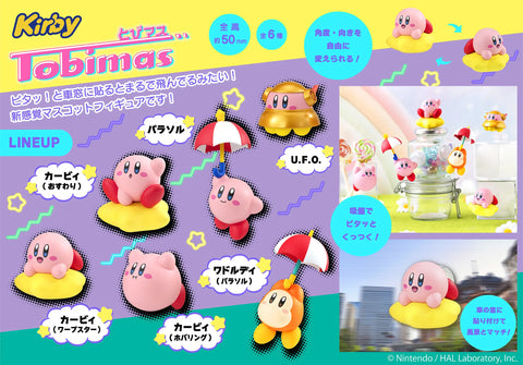 MegaHouse's "Tobimas" mascot-figure series lets you have your favorite characters accompany you everywhere you go -- stick them onto the windows of your car with the attached suction cup, and it'll look like they're flying along with you! You can freely adjust the angle and direction of these "Kirby" characters -- you'll find all sorts of different ways to enjoy them! There are six different characters to collect and trade, and they're randomly packed in boxes of six.