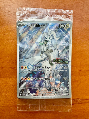 Authentic sealed promo card featuring N riding Reshiram from the Journey Together Pokémon TCG set.