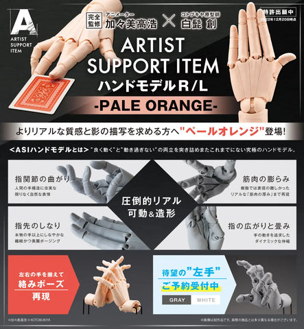Kotobukiya's "Artist Support Item" posable human hand model is back! Hands are one of the biggest obstacles faced by artists, and now Kotobukiya steps in to provide artists everywhere with a three-dimensional model of the biomechanical wonder that is the human hand! This life-sized model was designed by animator Hiroshi Kagami, who has worked on many masterpiece anime such as "Yu-Gi-Oh! Duel Monsters," and sculpted by Kotobukiya's leading sculptor, Hajime Shirahige. It's super-posable, engineered to have a realistic range of motion that mimics the hand's natural movement as closely as possible; natural poses are easy to create, since it's locked so that it won't move in a way the human body doesn't move. This model is an incredibly useful support item for beginning and established artists -- you'll love it!