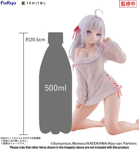 This super-sized noodle-stopper figure from FuRyu's affordable figure brand "TENITOL" features Alya from the TV anime "Alya Sometimes Hides Her Feelings in Russian"! Based on an original illustration, this figure presents Alya in a lusciously knitted sweater, with all the details of the intricate stitching and ribbon lacing carefully recreated. Alya's soft skin is also reproduced with great care, making it look almost translucent and glowing with health, and you'll love her smile! Her adorable kneeling pose is carefully sculpted to let her assist your instant noodles steep to perfection.