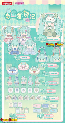 Step into a soft, storybook world with the Hatsune Miku Fantasy Stroll kuji series, a collectible set featuring pastel tones, whimsical costumes, and exclusive illustrations. Designed for fans and collectors alike, this series combines plush items, practical accessories, and decorative goods, all unified by an original Hatsune Miku theme.