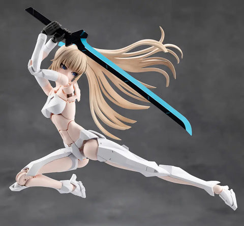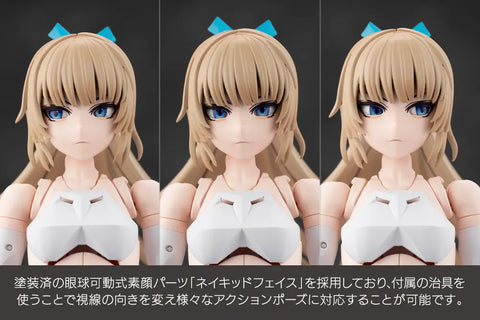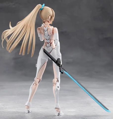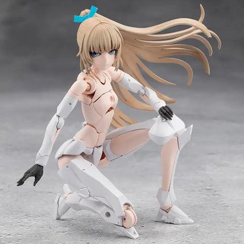 This item features "Modified Extended Skin Parts" that are an updated version of the original extended skin parts, developed to make it easier to combine female Anothers with flesh-and-blood characters. The base kit is the Principal, but approximately 50 percent of the body, including the joints and exterior, has been replaced with skin parts. The fair skin color C is a perfect match for the "Sousai Shojo Teien" series Yakushiji Kuon. A version of the shoulder blade joint parts without armor detailing is included.