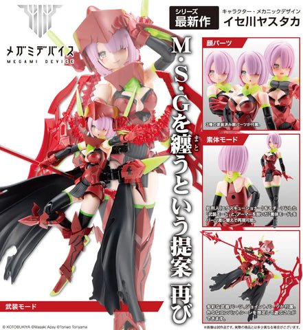 The formidable Bullet Knights Executioner Hell Blaze is the latest addition to Kotobukiya's "Megami Device" model-kit series! This set allows you to create even more diverse customization by combining Bullet Knights Executioner with two newly-colored greatswords and a spear from the "M.S.G" series item Holonic Arms. The molding color has also been completely overhauled to a dark red, following the "Hell Blaze" design. This figure is, of course, designed by Yasutaka Isegawa, and comes with three new interchangeable faces!