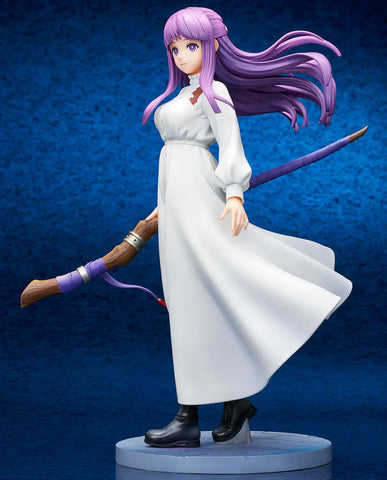 Fern from the TV anime "Frieren: Beyond Journey's End," is recreated in figure form by Ques Q, as she was seen in her battle against Lugner! Her white dress has Lugner's bloodstain on her shoulder, and her distant expression suggests her boundless power; her staff and her butterfly hair accessory are carefully recreated in high detail. Her base is included.