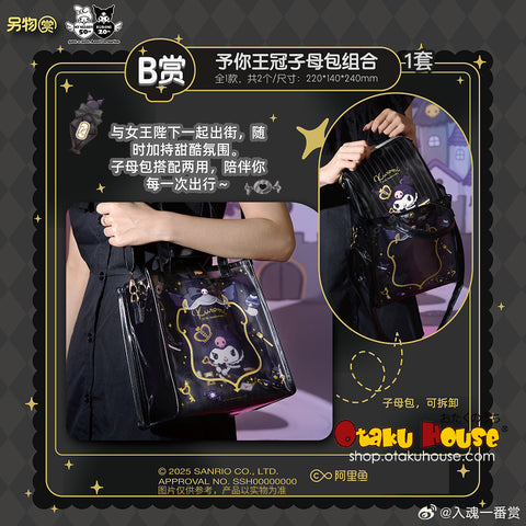 This exclusive kuji features one of Sanrio's most popular character of the day. Kuromi is placed on the throne and crowned Queen just like she's meant to be. All prizes are utilitarian, adorable and an absolute must-collect for fans our Queen Kuromi!