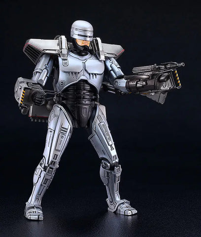 As seen in "RoboCop 3," RoboCop equipped with a jetpack returns to the "MODEROID" model-kit lineup from Good Smile Company! This kit adds a jetpack and arm gun to the "MODEROID" RoboCop kit, and he'll be fully posable after assembly; a special neck part is included for flight poses with his head facing forward, too! This kit is molded in color so painting isn't necessary, and waterslide decals are included. He's in the same scale as "MODEROID" ED-209 and "MODEROID" Cain, so they can be displayed together.