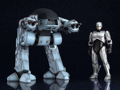 The ED-209 from the film "RoboCop" returns to the "MODEROID" plastic model-kit series from Good Smile Company! The peacekeeping machine manufactured by Omni Consumer Products will be about 20cm tall when completed; its joints, pistons, and slide rails are articulated so you can recreate your favorite poses from the film! The model kit is molded in four colors so painting isn't necessary, and wires are included to recreate the cables connecting to its arms. Waterslide decals are included for further detailing too, and preassembled joints make the model easy to pose.